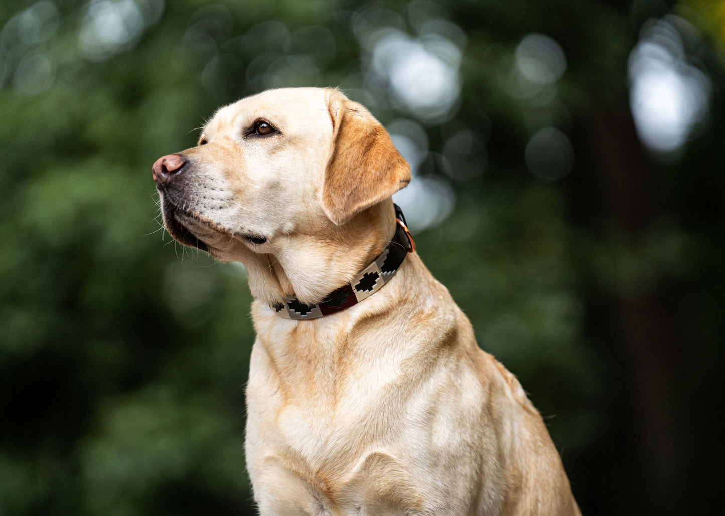 Hundehalsband aus Leder mit edlem Stickmuster.